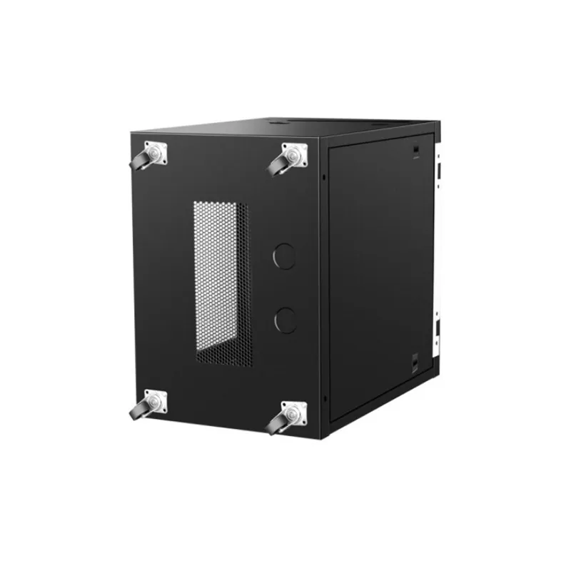 19'-15U wall mounted network cabinet It is a standard network equipment, which is 19 inches in size, 15U in height, 600mm in width and 450mm in depth.This kind of cabinet is usually used for the stacking of computer network equipment, wireless communication equipment, and electronic equipment. It is designed to meet the standards of ANSI/EIARS-310-D, IEC297-2, DIN41491, etc. The protection level is IP20, with good heat dissipation, silent design and convenient site installation. The product material is high quality SPCC cold rolled steel plate, surface treatment is degreasing, phosphating, electrostatic spraying, and the main body colour is grey. It is compatible with all 19’ rack-mounted devices and provides top and bottom pre-set multiple routing channels for easy installation and maintenance. In addition, it features atmospheric exterior design, precision craftsmanship and dimensions, standard welded frame construction, and can be equipped with non-perforated locking door strips or mesh front doors.